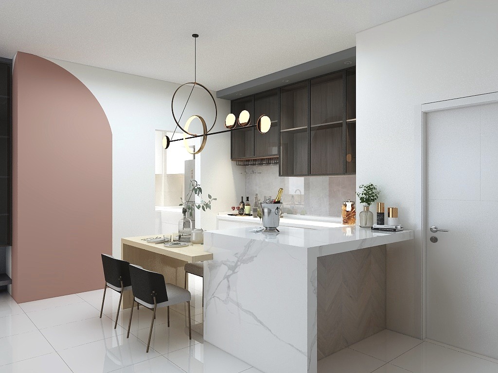 The modern contemporary design style favors wide, open layouts to create a sense of spaciousness in the home, much like modern and industrial design styles. It also have big windows to let in as much natural light as possible, which makes the room look even bigger than it is.